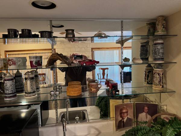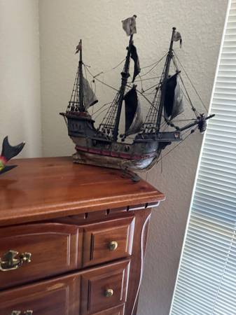 pirate ship model, butter churn, crank telephone, crocks, indian headress, chests, lawyers book cases, antique toys, Large collection of antiques. cash and carry.