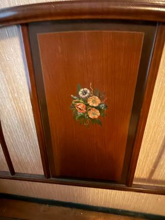 Antique metal bed with flower design. Queen size In excellent condition Dresser 4 drawer wood dresser with mirror