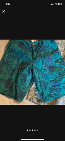 4 boys shorts, size 14, brands: Unionbay, Carpenter, and Cat & Jack.greenish one has adjustable waist. I have A LOT of clothes in that size, as well other sizes, too if interested to check out