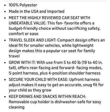 New 21zero-five71-442seven (text only) (cash only) Evenflo Tribute LX Convertible Car Seat – Compact Location #26