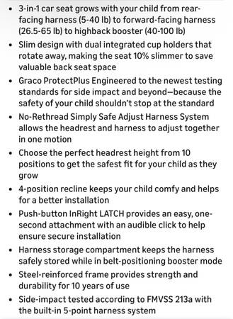 New 21zero-five71-442seven (text only) (cash only) Graco Slimfit 3-in-1 Convertible Car Seat, Space Saving Design, Forward & Rear-Facing, Highback Booster Option – Sydney Location #55