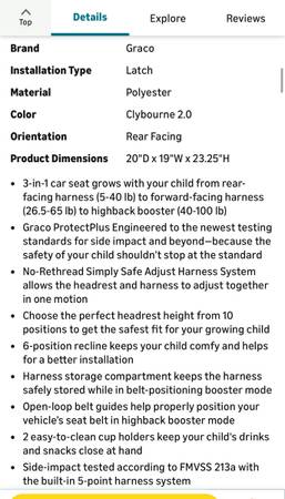 New 21zero-five71-442seven (text only) (cash only) Graco TriRide 3-in-1 Reclining Car Seat, Clybourne - Rear & Forward Facing Car Seat, Highback Booster, Adjustable Headrest Location #51-57