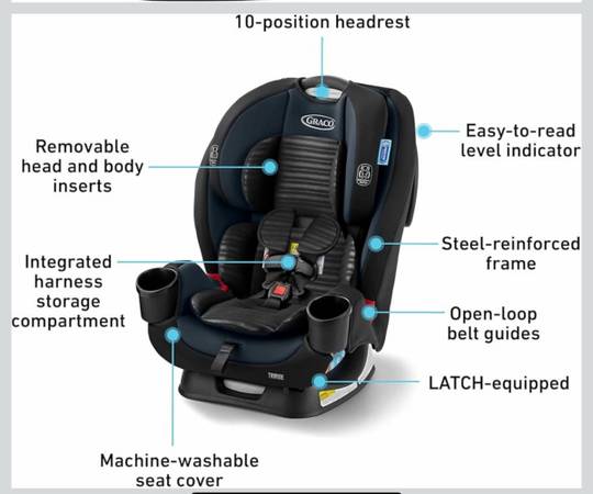 New 21zero-five71-442seven (text only) (cash only) Graco TriRide 3-in-1 Reclining Car Seat, Clybourne - Rear & Forward Facing Car Seat, Highback Booster, Adjustable Headrest Location #51-57