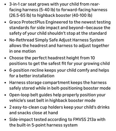 New 21zero-five71-442seven (text only) (cash only) Graco TriRide 3-in-1 Convertible Car Seat - Highback Booster, Forward & Rear Facing Modes, Suitable from Newborn to Preschooler, Perfect for...