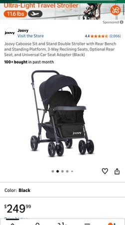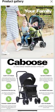 New 21zero-five71-442seven (text only) (cash only) Joovy Caboose Sit and Stand Double Stroller with Rear Bench and Standing Platform, 3-Way Reclining Seats, Optional Rear Seat, and Universal Car...