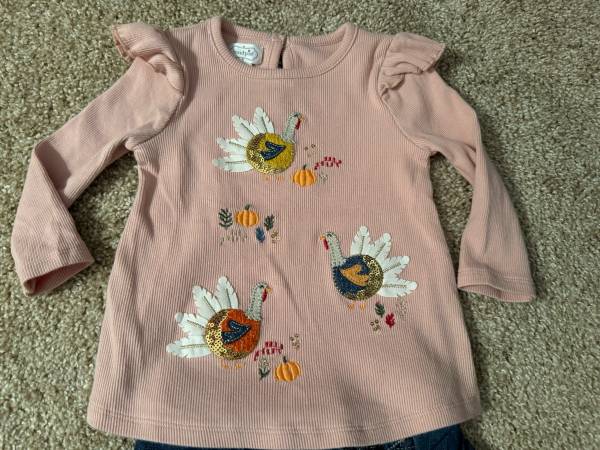 This adorable Mud Pie long sleeve shirt is perfect for your little one's casual wear. With a turkey-character design, the shirt comes in a beautiful pink color that will make your baby stand out. The long sleeves provide extra coverage for your baby during cooler weather, and the fabric assures a comfortable fit.