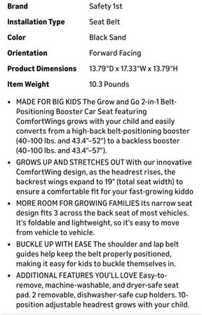 New 21zero-five71-442seven (text only) (cash only) Safety 1st Grow and Go 2-in-1 Booster Car Seat with ComfortWings, Converts High-Back to Backless, 19" Wide, Fits 3 Across, Lightweight, Foldable,...