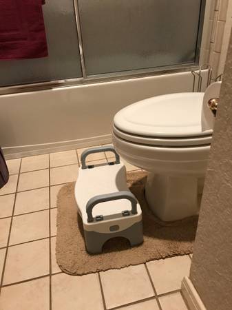 Toddler step for sale in excellent condition. Great aid for toddlers using the toilet. Lightweight and foldable. Plastic material. White and grey in color. $10.00 firm. Text only, please.