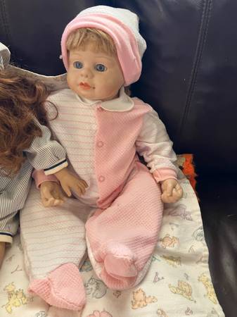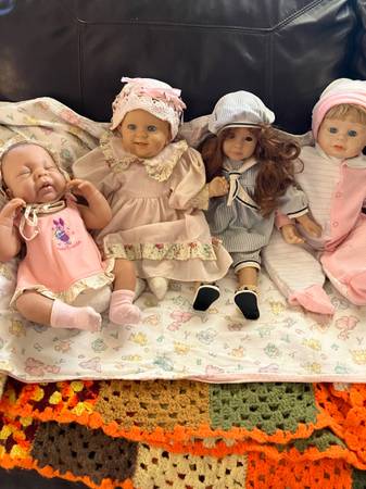 I bought these dolls, 20 years ago, for my daughter who loved her dolls. One infant is automatically correct as a baby girl, the others are heavy for their age, all are in perfect condition and I do have some baby clothes for them. I paid $175 for each doll back then. They would be an excellent Christmas present for a little girl who absolutely loved her dolls before she grew out of them. I’m asking between $50-$100 for each. They smell new, no mold!