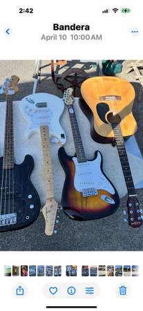 I’ve over stocked again, and you’re gonna get the savings. Over 60 guitars, keyboards, cast iron pots and pans, Jordan’s, kswiss, Nike, Harley, adidas, western wear, new and vintage pearl snap western shirts, jewelry, leather tassel jackets, vinyl, record players, planters, yard art and more. Come see us 10:00 till 6:00 Tuesday thru Saturday at 204 12Th st. Bandera, Tx. Just one block before the main traffic light on left, beside the chevron station.