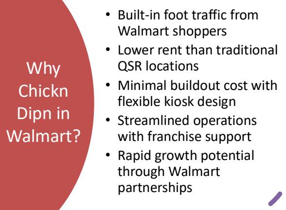A rare opportunity to own a Chickn Dipn location inside a high-traffic Walmart β one of the most in-demand franchise setups in the quick-service space!