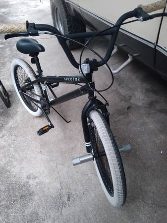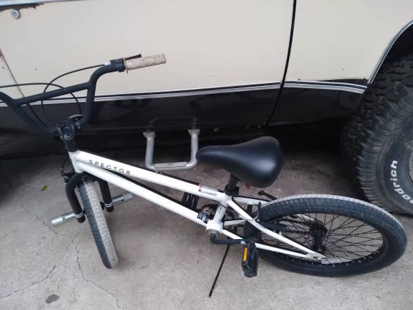 Selling one 20 INCH KENT SPECTOR BMX BIKE. The bike Fits riders 4' 2"- 5'. This bike has a four bolt Alloy Stem, Alloy Rims and front pegs. The bike has adjustable seat height, Steel FRAME with SPLIT COLOR PAINT and SPLIT COLOR TIRES, DUAL HAND BRAKES. The Tires are 20 x 2.35, Front and Rear hand brakes for safety. The bike is pre-owned in great Condition, except for a couple scratchs on top of FRAME. Asking price is $85.00. Thanks for looking.
