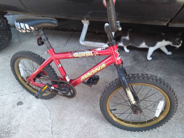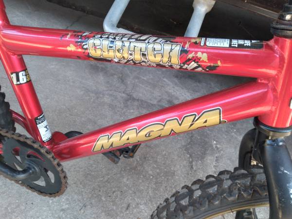 Selling one BOYS 16 INCH MAGNA CLUTCH BICYCLE. The bike is a 1.6 control SERIES, color RED, BMX STYLE. The BICYCLE has coaster brakes on the pedals, nice padded seat, good tires and ready to ride....