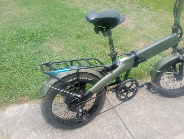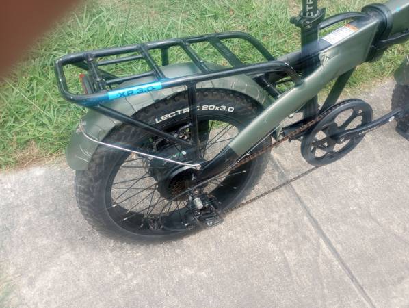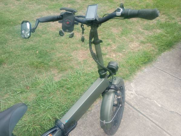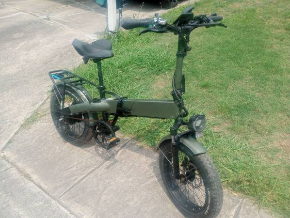 Used folding e-bike that is in good shape. Around 100 hours of ride time. It's a black bike that has a green vinyl wrap that can be removed. It comes with an extra battery.
