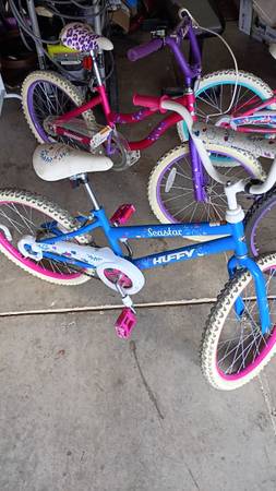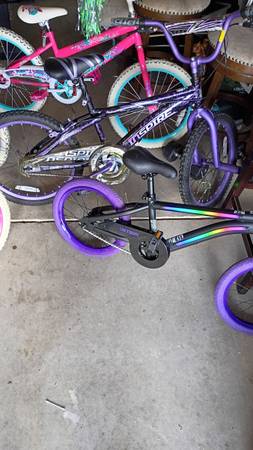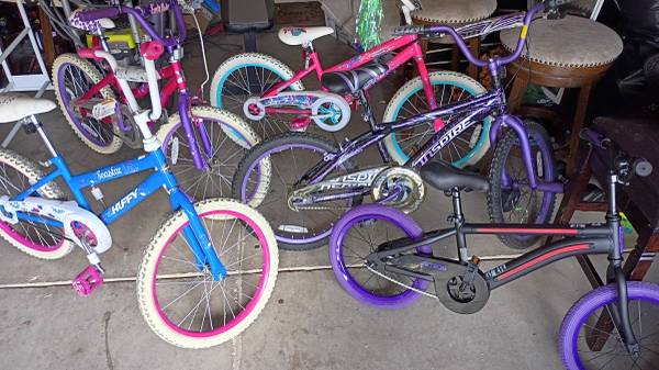 4 used girl 20 inch wheel bikes for sale. Ages 7-14 . They are ready to ride. The little purple Jetson has lights and needs one new tube. Want to sell all together for 50.00.