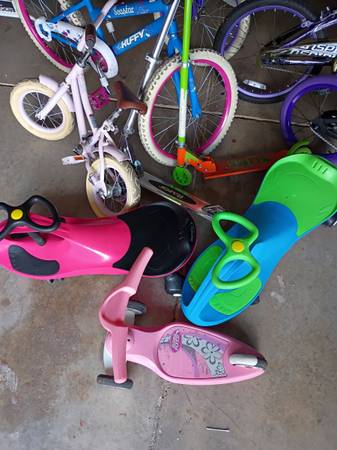 I'm throwing in the six items for free if you purchase all bikes. 1 extra bike for 3 years older, 3 used scooters, and 2 Plasma cars for toddlers. Pics are there. :)) God Bless