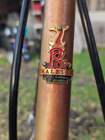 Vintage Raleigh Olympian, original components great looking and shiny paint is a two tone burgundy and gold, only thing i replace was the tires i put a pair of Continental Ultra Sport. Its a xl frame for someone 6' to 6'4 tall it might need a tune up due to just being in storage room, and to be around 40 years old it looks awesome. txt 2one0 four6seven7two1seven