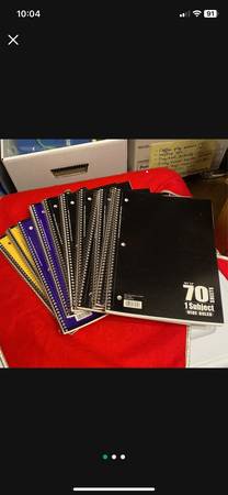 11 pcs NEW 1-subject notebooks Wide ruled. I have more if needed, I have also a lot of new Compositions books, binders, folders, small clipboards, packages of new and used coloring pencils, markers, crayons, ruler, etc. I have as well plastic table organizers, etc