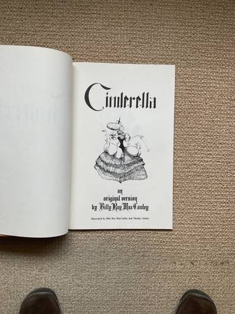 This vintage version of “Cinderella,”the classic fairy tale, is the original illustrated one by Billy Ray MacCauley in collaboration with Thomas Adams. A FIRST EDITION of this work, dated 1976 and published in Austin, TX. Decidedly a book for all people, big and small, and profusely illustrated throughout. Measures a sizable 17”H x 11”W and a treasure to own and share. In like new condition and a joy to see and read. Local Pickup. Cash and Carry Only.
