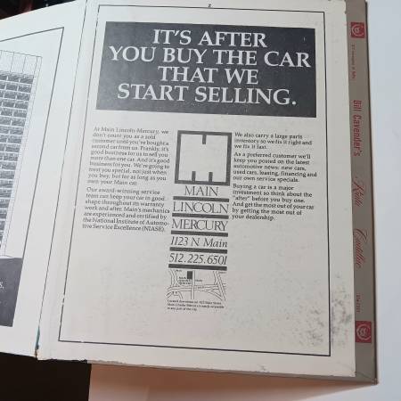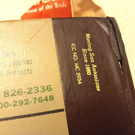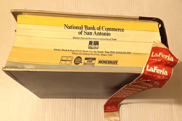 comes with a cloth bookmark attached (which is from a local business - Roto Rooter)