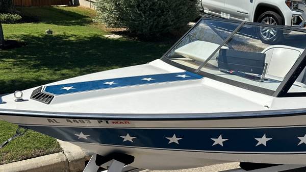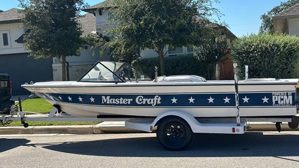 1984 MasterCraft Prostar Stars and Stripes model in the line of inboard, direct-drive ski boats. This boat is a classic 19-foot tournament ski boat that is known for being a head-turner and a top performer, powered by a Pleasurecraft Marine (PCM) 351 V8 engine. Comes with Mastercraft trailer and boat cover.