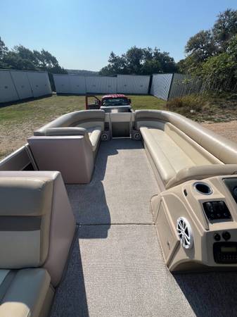 CLASSIC SERIES cruise models fulfill the promise of a great day on the water, whether you are idling nowhere special or hustling to your favorite destination to build a fire and just kick back. PREMIUM DESIGN FEATURES – including swept graphics, custom seat design, unique top design and high-quality materials – make this pontoon an instant Classic. The Classic Series comes standard with features and styling that compliment your boating lifestyle. At any level of performance and length, the Crest Classic delivers. This Crest Pontoon is kept under cover in a Canyon Lake storage facility. Storage unit is available as well. Boat and motor are in excellent condition ready for the lake.