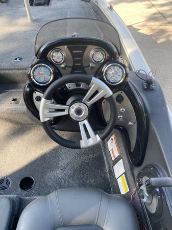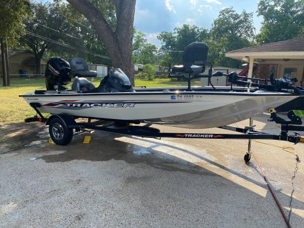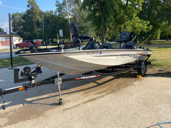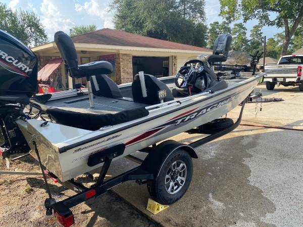 Hello, I have a 2022 Basstracker 175TXW tournament edition with a 75 hp mercury four stroke the biggest Motor you can get in the boat configuration it has 95 actual and original hours boat also has vessel view carpet, and interior are in excellent shape has bimi top lots of storage rod holders three bank on board charger Minnkota 24 V 70 pound thrust maxim trolling motor to hook five full color GPS depth finders will seat four people or 555 pounds Boat is in excellent condition has single axle matching tracker trailer with step and handle detachable tongue with brand new tires less than 60 miles everything works as it should also has fire whale tail also for fishing lights extra rod holders I have all three titles to boat motor and trailer in hand asking 15,500 or best offer have all booklets and manuals one owner Boat bought new for more information or any questions. Please give me a call show contact info