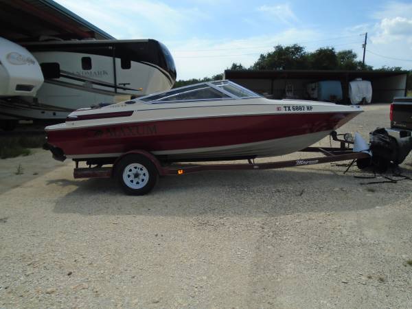1994 Maxum 18 foot, V6 power, 180 hp mercruiser engine. Wrapped maroon vinyl comes with a trailer. Storage kept and covered. Serviced every year since I've had it. Upholstery is in great shape, no...
