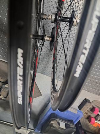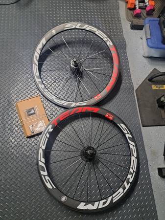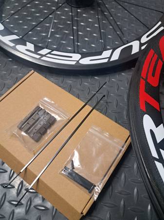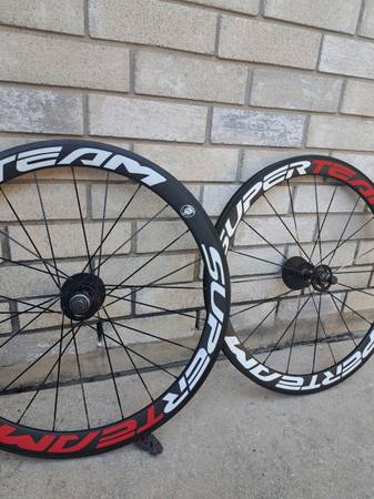 Super Team 700c Track Fixie Single Speed Wheelset Excellent condition Fixed gear singlespeed Flip flip hub Run fixed or freewheel Includes extra spokes and means pads for carbon fiber wheels No...