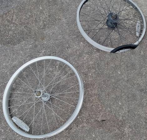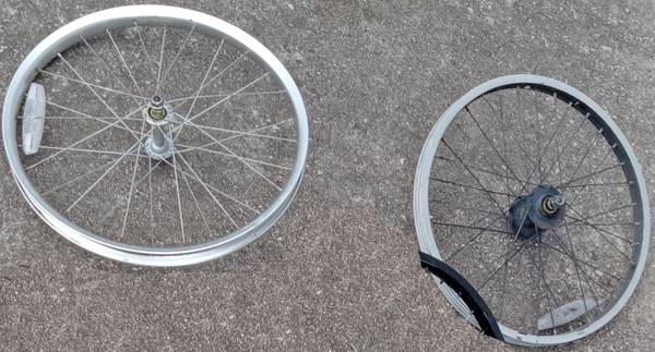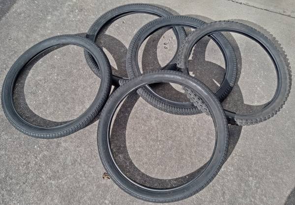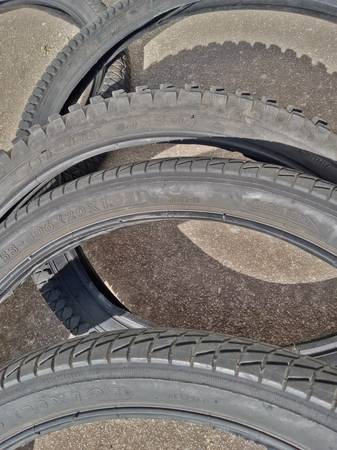 20 inch - front Rim with Axle Nuts $12 Each (only 2 front left) .. Tire $10 Each (only 3 left) .. Cash only .. Located by Exxon Higgins Rd 78217 (see red dot on map)