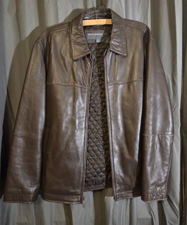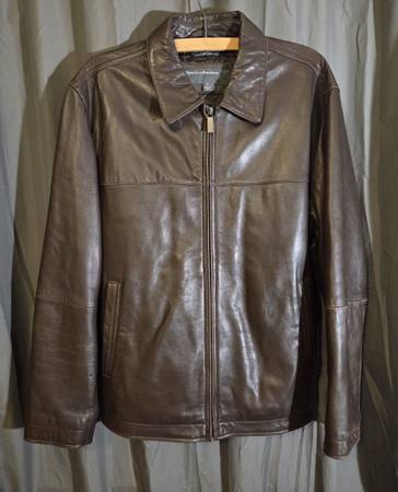 classic, hip-length men's jacket made from soft, supple, genuine lambskin leather with a brown or cognac finish.