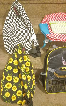 brand new - Backpack, Waist pack, fanny pack, bag, Sunflowers Checkers.. Brand new with tags, never used .. $15 Each, cash only .. Located by Exxon Higgins Rd 78217 (see red dot on map)