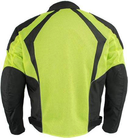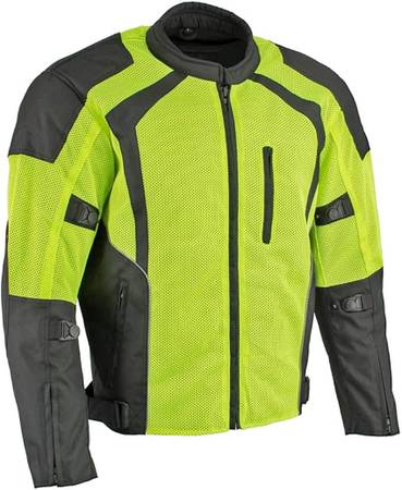 Brand new Bright Color / High-Viz Jacket with tags .. Reflective Piping on Front and Back of Jacket for Night Driving .. Built in Dual Side Pocket .. All Season Biker Jacket .. Front Zipper Closure .. Adjustable Side Straps for Perfect Fit .. Full sleeve zip-out Liner .. Removable Pad Shoulders, Elbows, Back .. Interior Phone Pocket with Bonus Slant Pocket .. Built Inside Hanging Loop .. Genuine YKK Zippers - known for Longevity and Durability .. Size XL .. Located by Exxon Higgins Rd 78217 (see red dot on map)