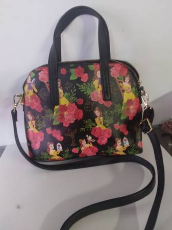 A beautiful black and Roses Disney Beauty and the Beast Belle purse with brass hardware. Short handles and a long shoulder strap included. Excellent condition. Located at the junk Depot in San...