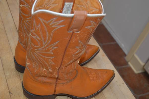 JUSTIN COWBOY BOOTS SIZE 12 D, LOTTA MILES LEFT. GOOD ONES PARDNER.