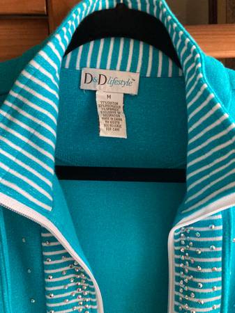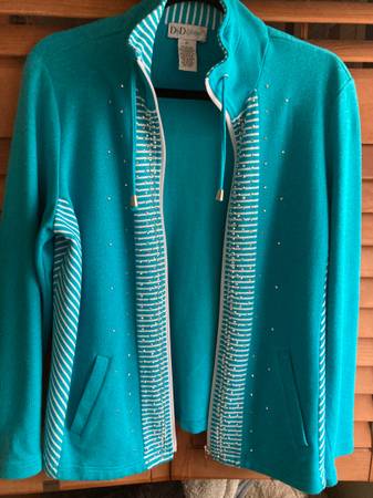 $5. Like new perfect condition, just clearing out closets. Size M, side pockets, zipper front, cotton poly spandex blend fabric. from pet and smoke free environment.