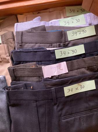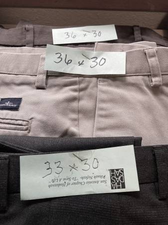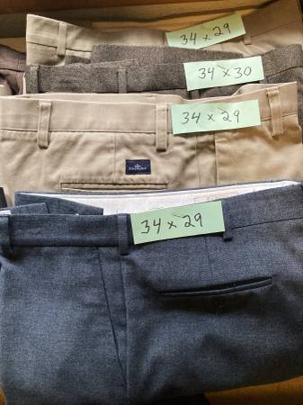 $5. each , your choice. Or the bundle of 13 pairs for $55. Like new perfect condition, Sizes 34-35 waist, one pair size 33 waist. Brand names: Haggar, Farah, Ralph Lauren, Gap, Dockers, Murano....