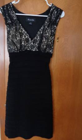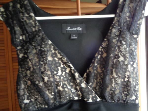 $10. Excellent Condition. Worn Once. Beautiful floral lace bodice, completely lined, form fitting, 95% poly, 5% spandex, very flattering. Washable. Pet and smoke free environment.