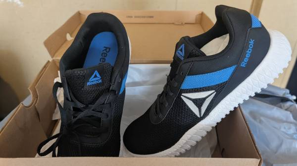 2 pairs Men's Sneakers size 10.5 Fubu White/Gray with Red Accents $15.00 Reebok Flexagon Running Black/Blue $40.00 Both pairs brand new in the box.