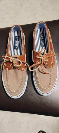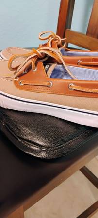 Selling a very nice & very gently used pair of Sperry Bahama II Boat Shoes. Brown leather & canvas fabric. Size 8 1/2 In super great condition. MPU Call/text