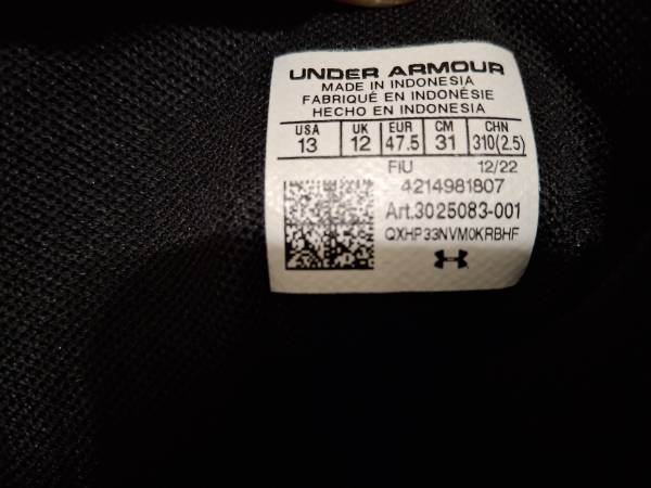 Like new Under Armour Locked Down, size 13, I am size 11 or 12 most other shoes/boots for reference. Location is far south San Antonio.