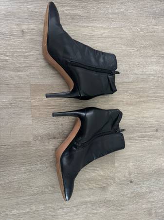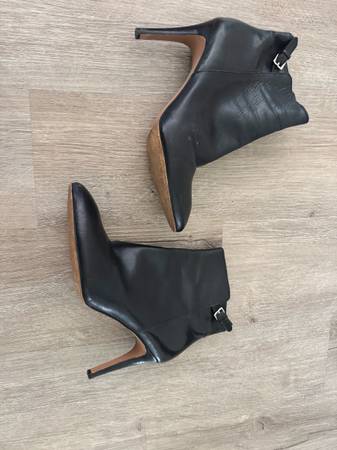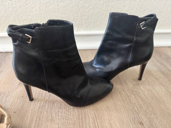 Genuine leather NICE!!! Features buckle on the side and opposite side zips up for ease of getting boots on & off. S/f home