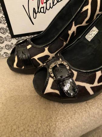 Very Volatile High hills with giraffe animal design, size 8, NEW.