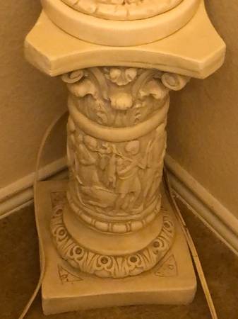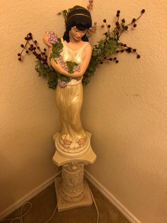 This Beautiful vintage piece Woman Sculpture Hight =26” Excellent condition delicate Roman statue holding grapes with stand