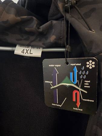 Brand New Camo 4 XL Tactical Series Shark Skin Soft Shell Jacket. With Pockets, Vents and Places for Patches. Runs Small.
