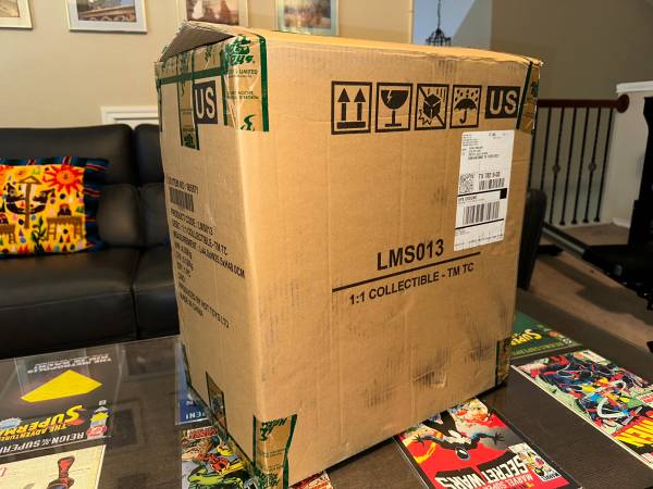 Stands over 14 inches tall, weighs over 10 lbs. Cloth outer garment, posable head, mouth, arms and legs with a soft, foam-filled belly. Comes with a display stand. In pristine condition; all accessories and original packaging included (see pictures). This is the best collectible version of this figure that's ever been available.