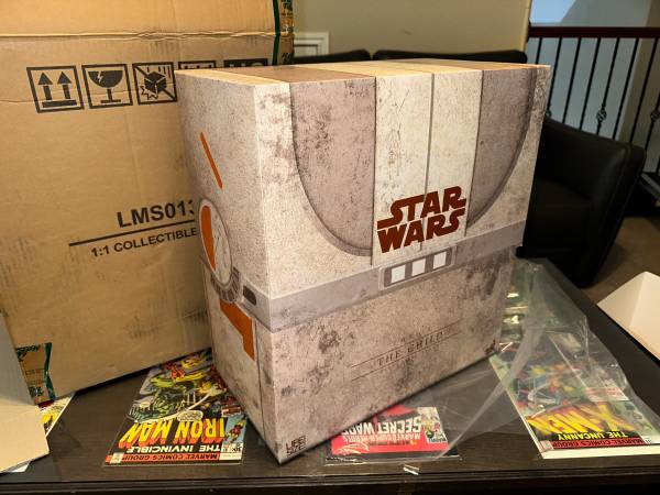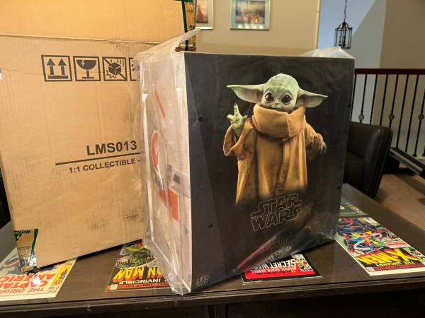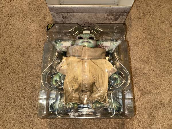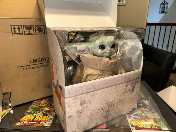 Full-size Deluxe Edition collectible figure of The Child (AKA "Baby Yoda" or "Grogu") from The Mandalorian, made by Hot Toys. Released in 2020, it has long since been sold out.