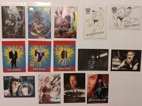 *photo with the 2 black & white Superman cards, bottom row are promos and others (except the 2 Crow cards) are inserts.