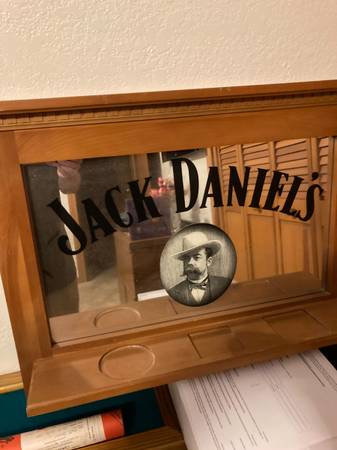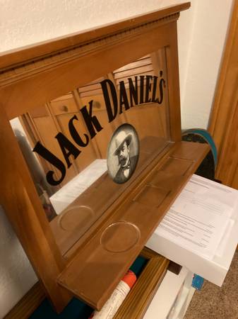 Rare Jack Daniels Collectible Shelf Mirror wall Hang - Man Cave, Bar, Pool Room, etc. - Shelf holds 3 different JD bottles for display - 32"W x 23"H x 5"D - No shipping or Pick-up by friend, etc. - Cash Sale in person only - Text show contact info