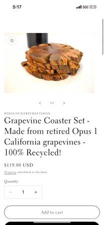 Call or text me if interested TwoOneZero- 664 - 7217 Grapevine Coaster Set of 4 Made from retired Opus 1 California grapevines 100% Recycled $30 for the set of 4 Local Pick up or Shipping Available...